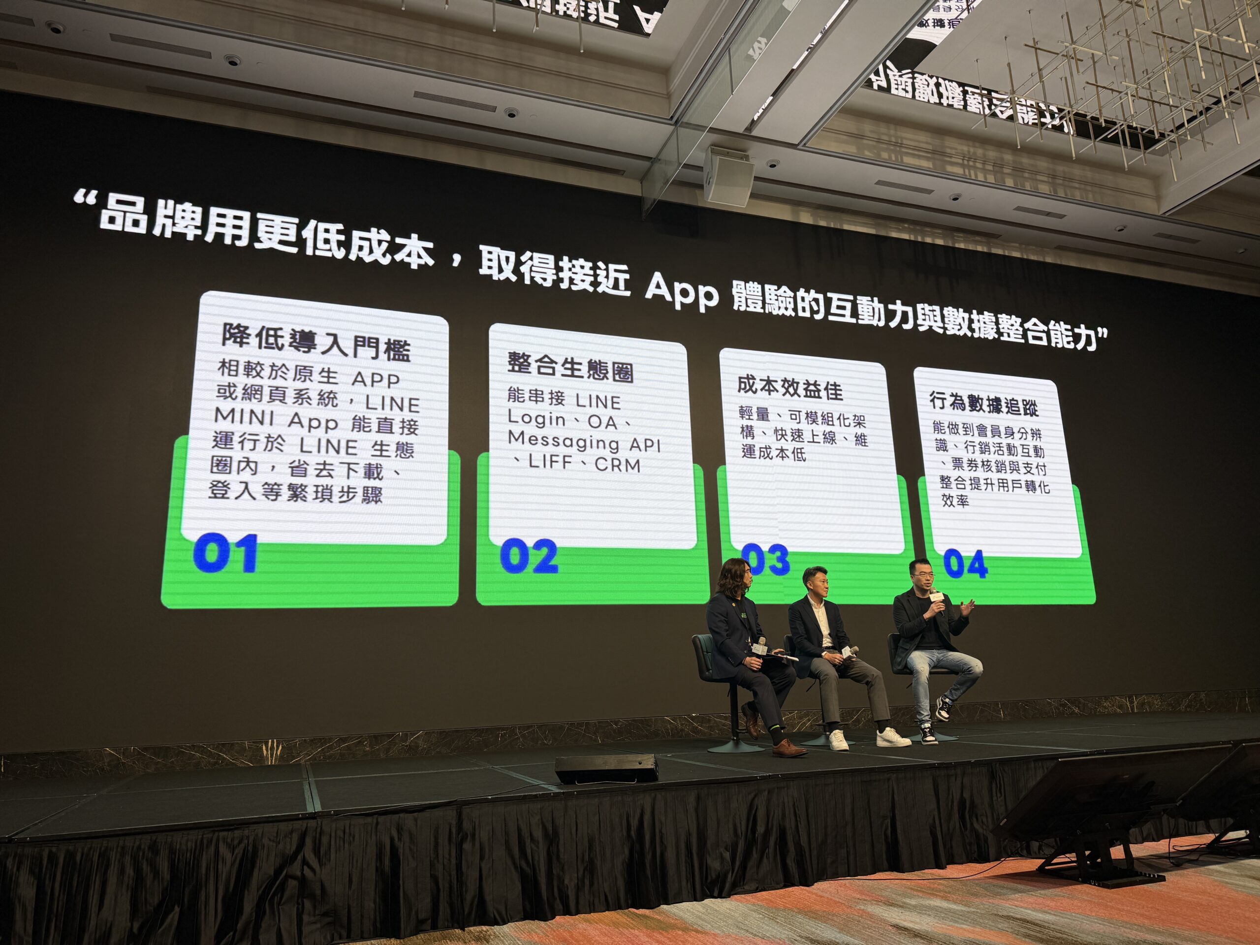 總經理 Paul首先指出,LINE MINI App 之所以成為 2025 年品牌最關注的服務入口,原因在於其能以更低的導入成本,提供接近原生 App 的互動力與整合能力。消費者不需額外下載 App,也不必切換平台,所有操作—從登入、互動到會員行為追蹤—都能在 LINE 內完成,使流程更順暢、轉化率更高。相較於傳統 App 或網頁系統,MINI App 的建構更輕量、開發期更短、功能模組可快速擴充,也讓品牌得以用最低成本,打造高互動、高留存的服務體驗。