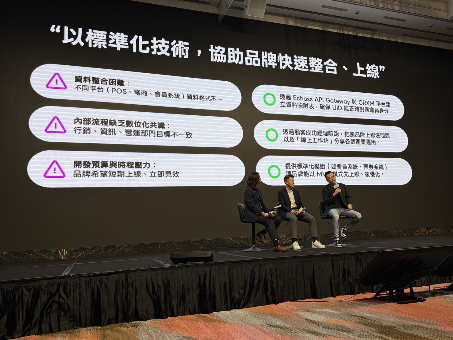 第一個挑戰是「跨系統資料格式不一致」——許多品牌同時使用 POS、電商、舊會員系統,使資料難以打通。為此,12CM Taiwan 透過 Echoss API Gateway 與 CRXM 平台建立統一的資料映射表,確保 UID 能在不同系統間準確對應,讓會員身分得以一致識別。