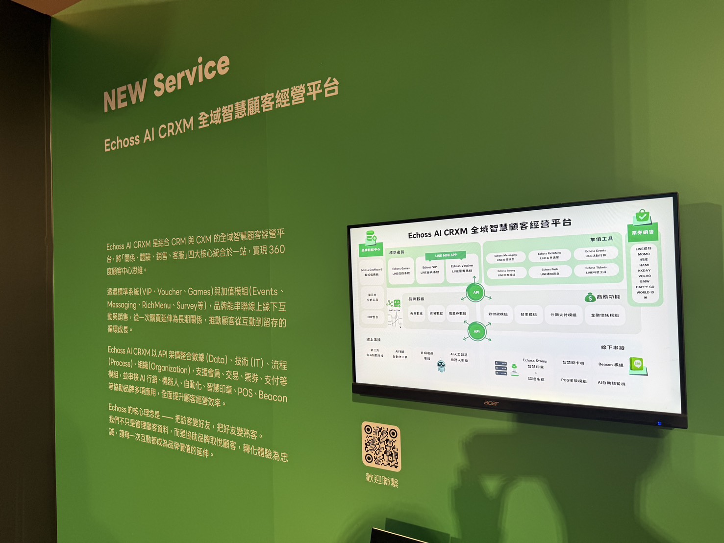 今年攤位的最大亮點,是 Echoss AI CRXM 全域智慧顧客經營平台正式進行對外展示。許多品牌主對平台的360° 顧客視圖、AI 行為預測、即時導購、票券與會員模組的全模組整合等模組表現高度興趣,並主動詢問可否整合品牌現有 POS、電商與 CRM 系統。CRXM 以其彈性的 API 架構與跨系統映射能力,成為現場討論度最高的技術之一。