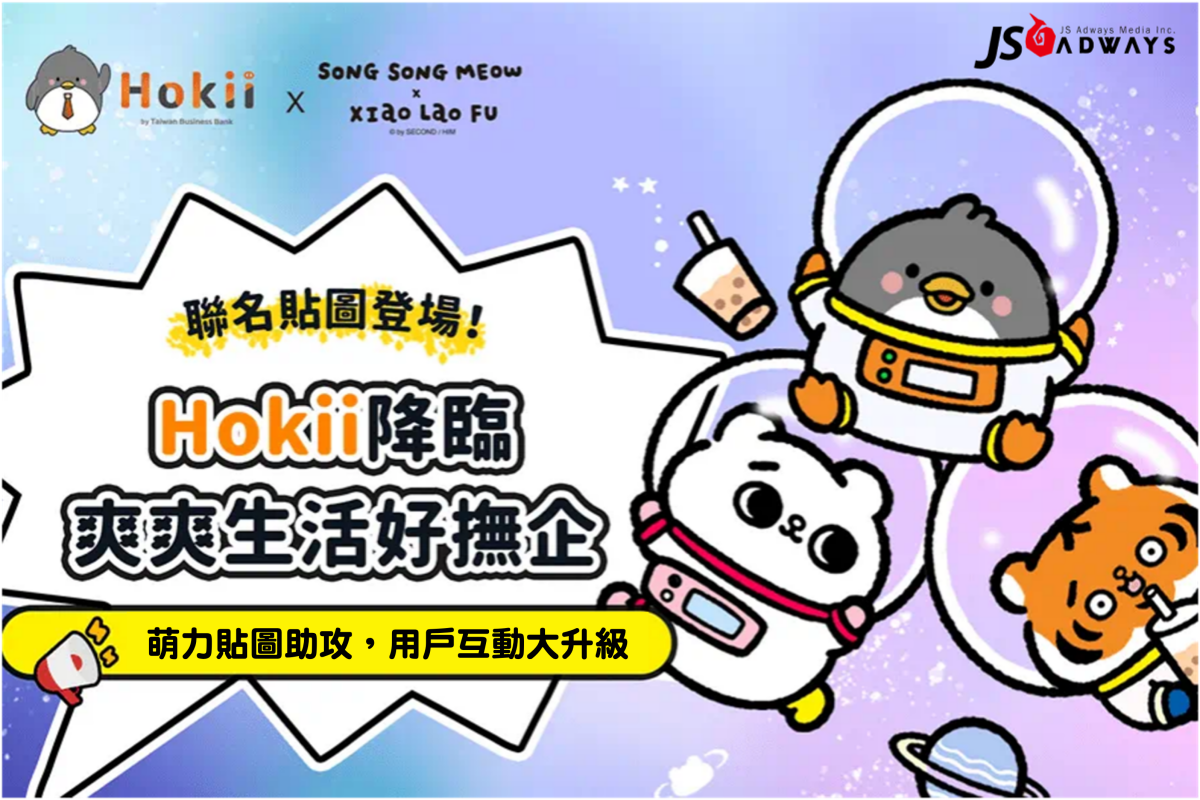 身為深耕臺灣多年的金融夥伴,臺灣中小企業銀行(簡稱臺灣企銀) 持續推動數位創新,希望以更貼近生活的方式與用戶互動。為了讓更多年輕族群了解旗下數位品牌 Hokii 數位服務 的便利與魅力,JS ADWAYS 規劃以高人氣插畫家 SECOND,搭配臺灣企銀知名 IP:Hokii,聯名推出一系列貼圖與 LINE 官方帳號內的遊戲化互動,開啟一場兼具療癒與創新的「爽爽企星球」冒險。