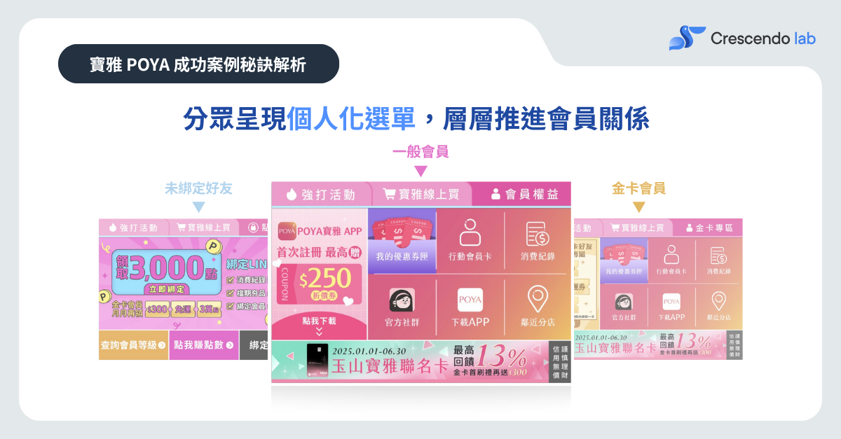 ▲寶雅以 MAAC 標籤自動分眾,依不同會員等級打造個人化選單(圖/漸強實驗室)