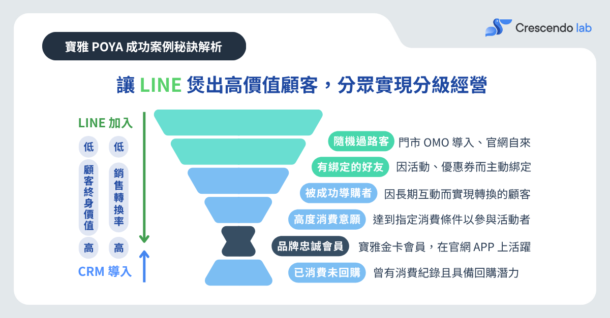 ▲寶雅善用 LINE 與 CRM 進行串接,用分眾經營煲出高價值顧客。(圖/漸強實驗室)