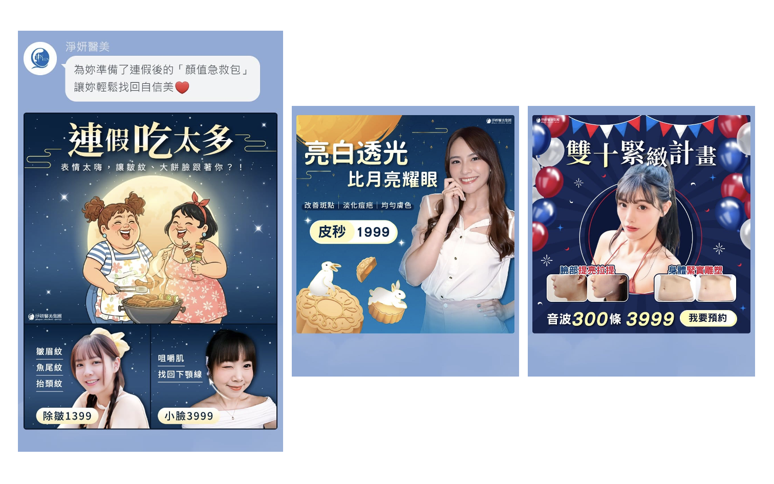 淨妍醫美數位行銷經理Joyce舉例,比如淨妍曾在中秋節做了一個吃烤肉而引發變胖危機的素材,在北部推播後發現成效很好,隔天就會同步發送在中南部;如果發現這個議題中南部客人相對無感,以後就會減少類似訊息,「藉由每一次的發訊和數據分析,都可以判斷不同地區的受眾喜歡什麼樣的素材。
