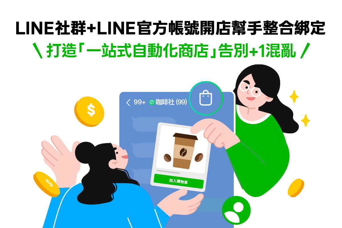 「LINE社群」與「LINE官方帳號開店幫手」兩大功能的串接,