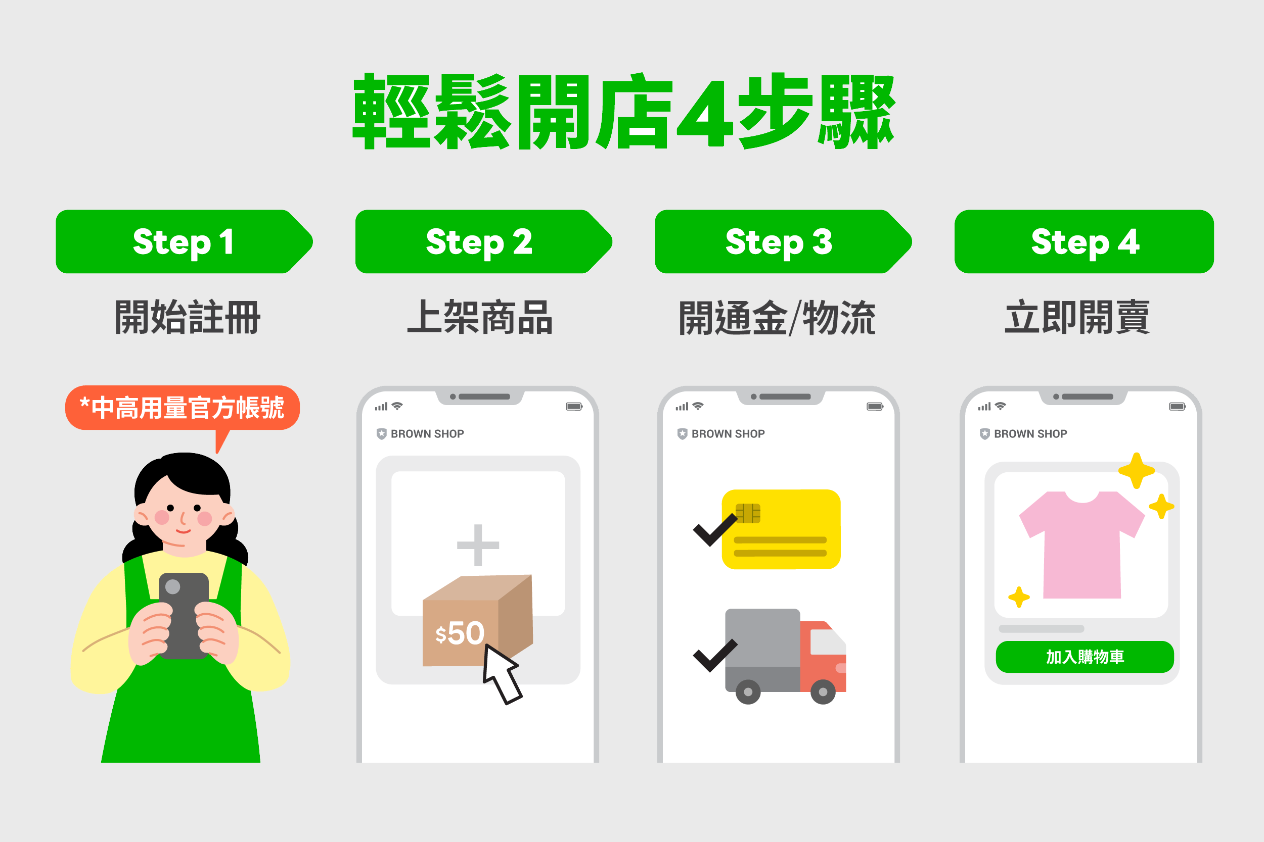 「開店幫手」主打0元成交手續費,輕鬆開店只要4步驟,讓賣家享受便利工具時,又降低營運成本,