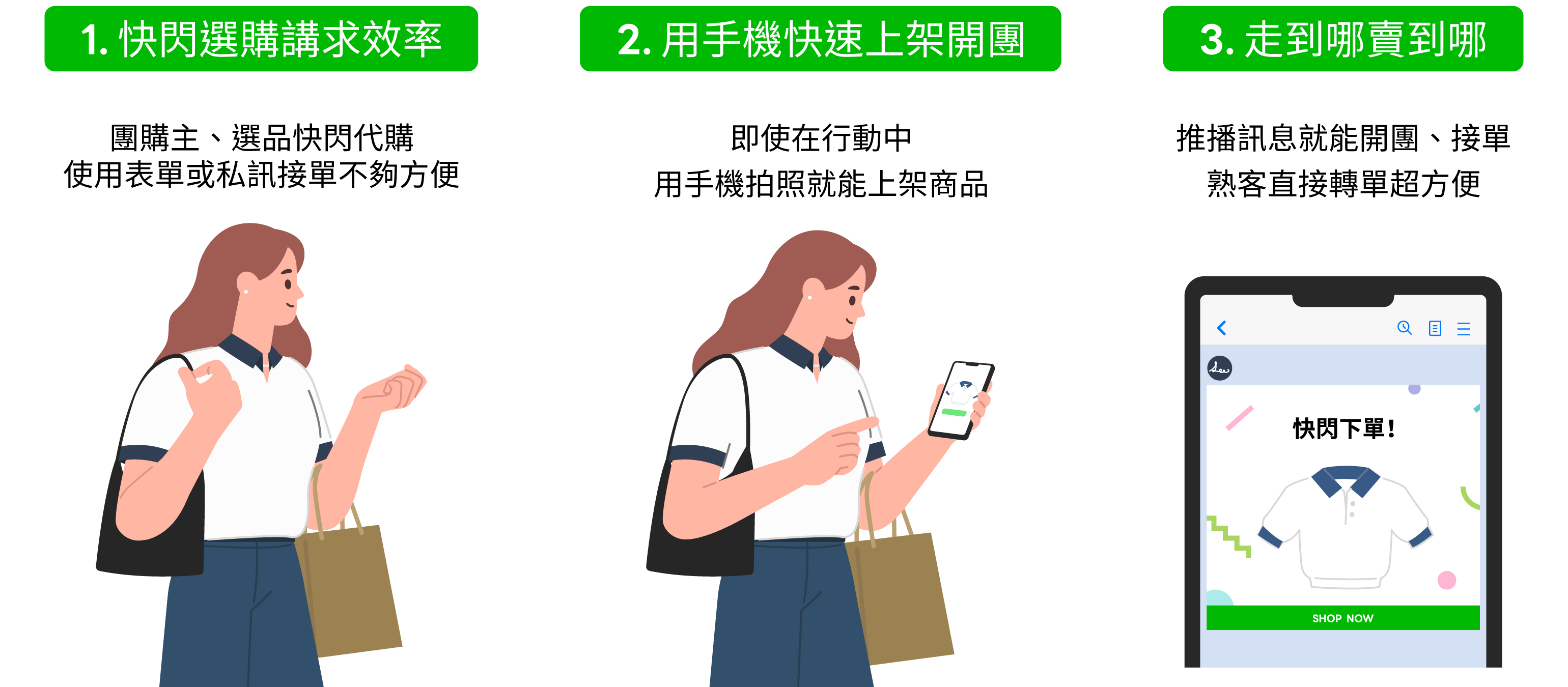 身為團購主、選品代購快閃店的老闆,你是否曾經歷過開表單或是社群平台私訊的方式接單?比起一個一個聊天回覆接單,現在用開店幫手的手機版功能就能直接快速上架、推播訊息開團、接單,熟客轉單流程變得更簡單!