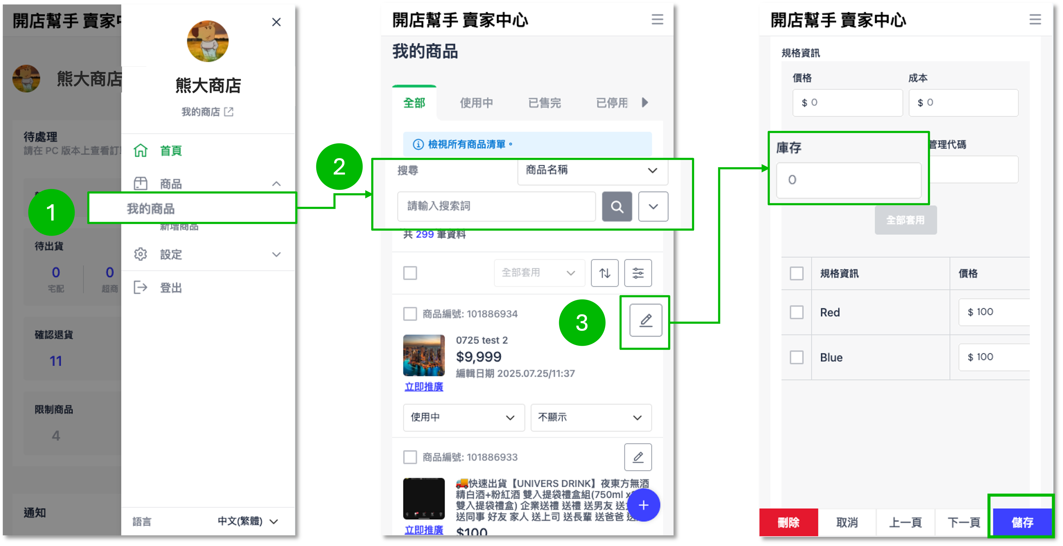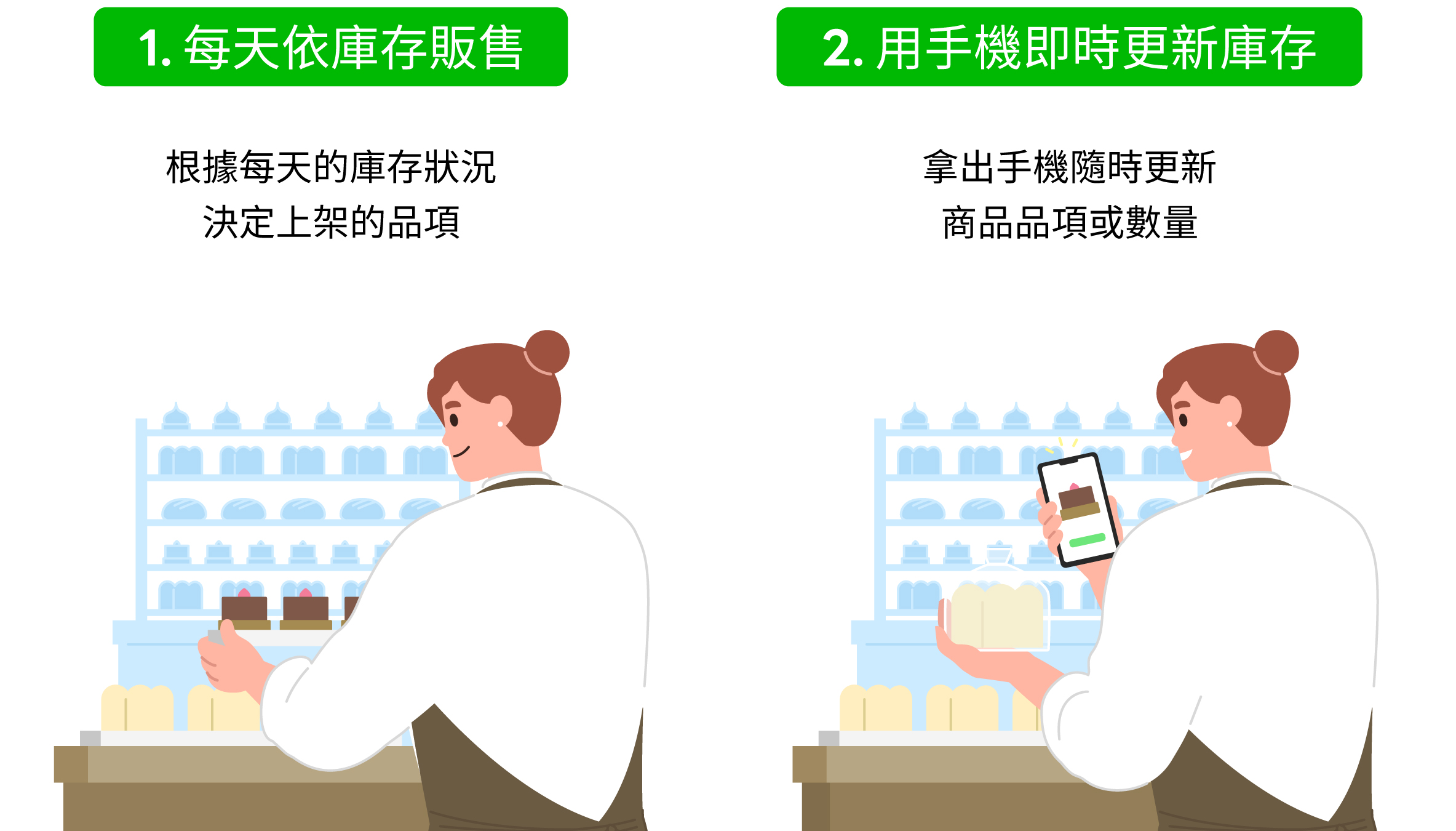 像是冷凍食品、營養品、咖啡豆等類型的商家,可以直接拿出手機,在店裡隨時更新商品數量或停售狀態,讓開店幫手成為行動庫存利器!