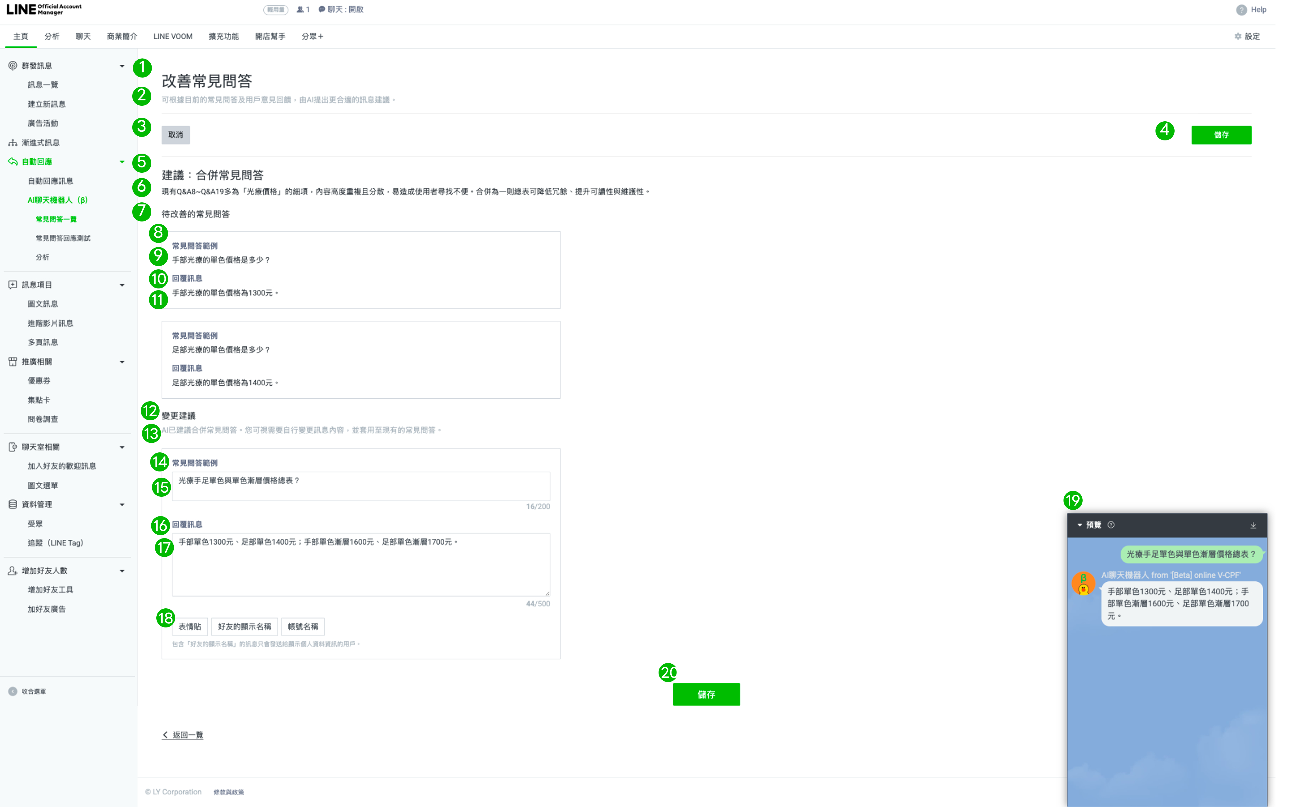 | 20 | 儲存 | 點擊時,保存該問答並呈現啟用狀態後,回到主頁 |