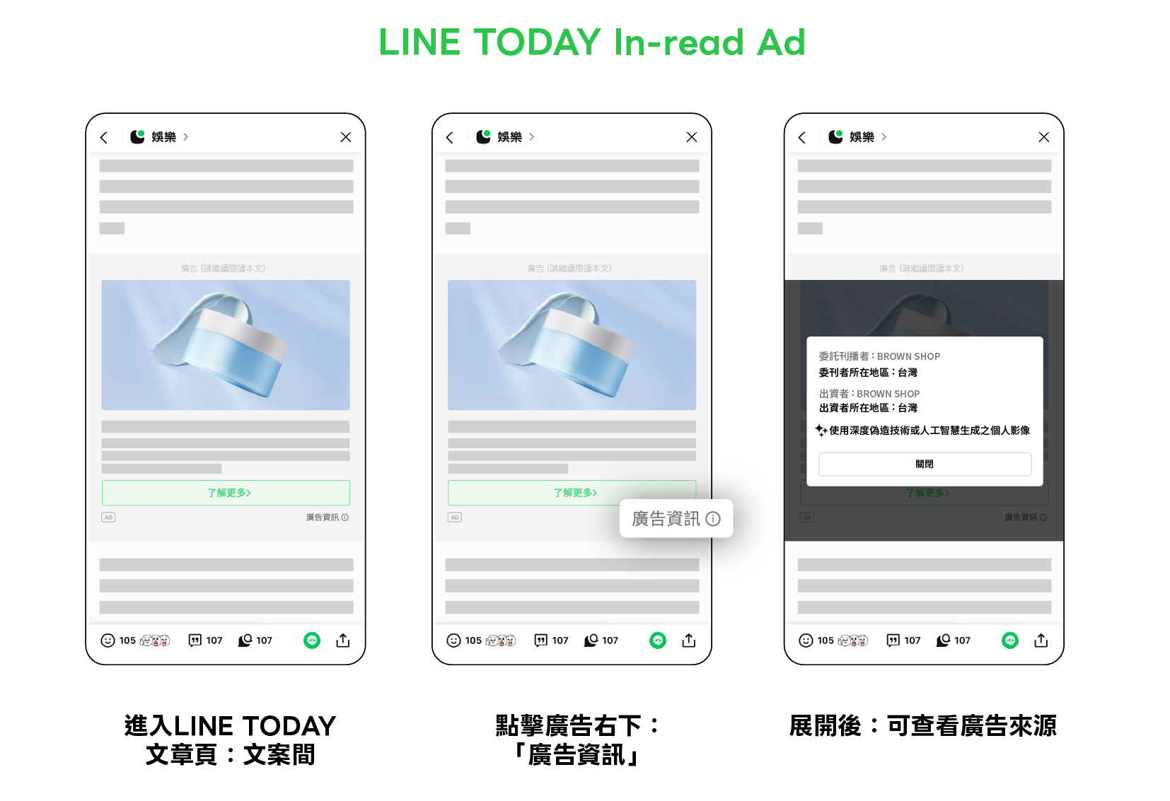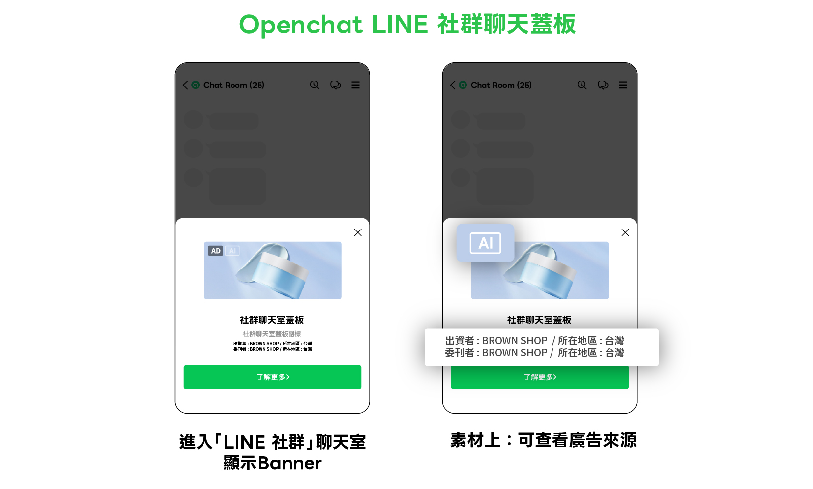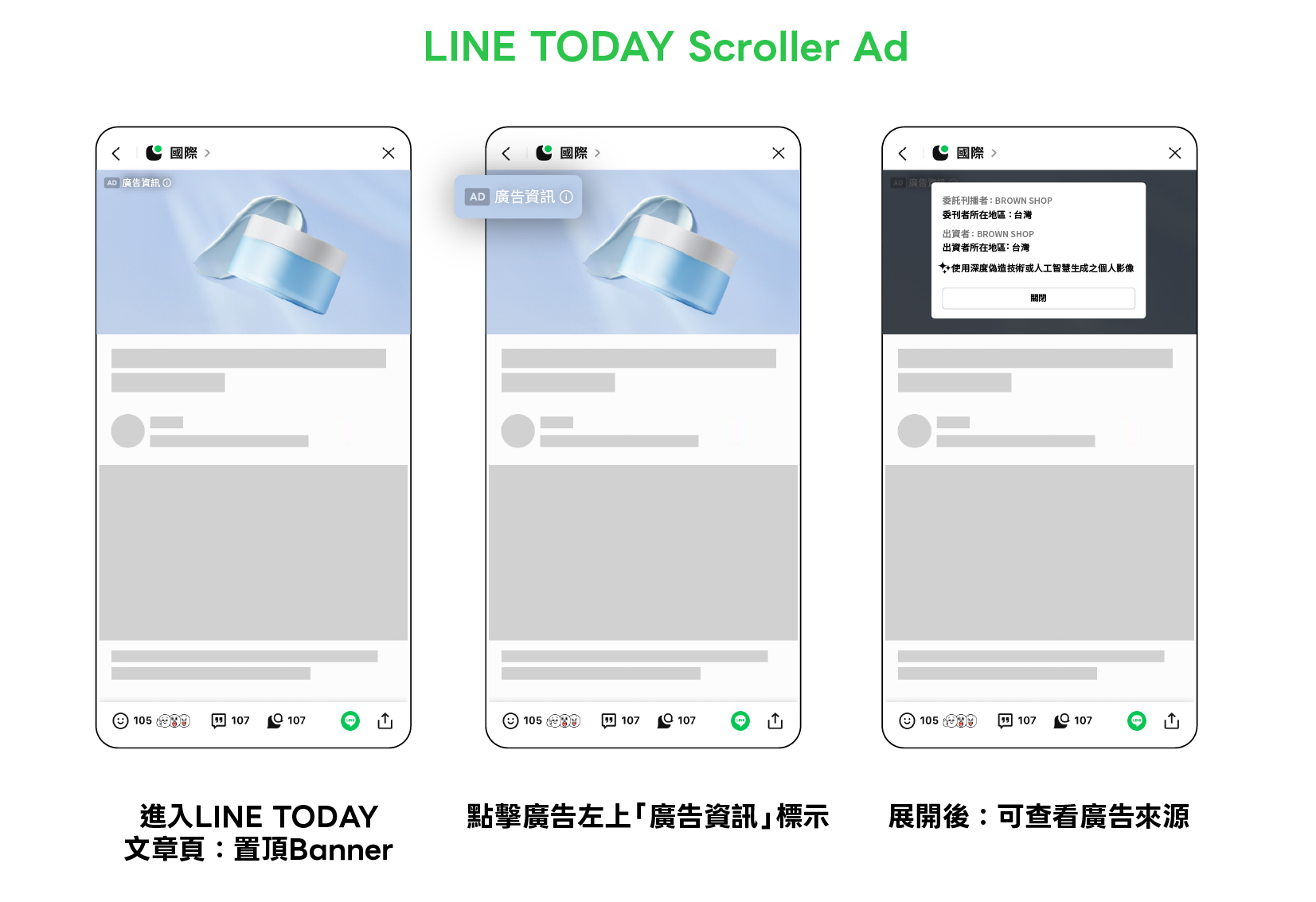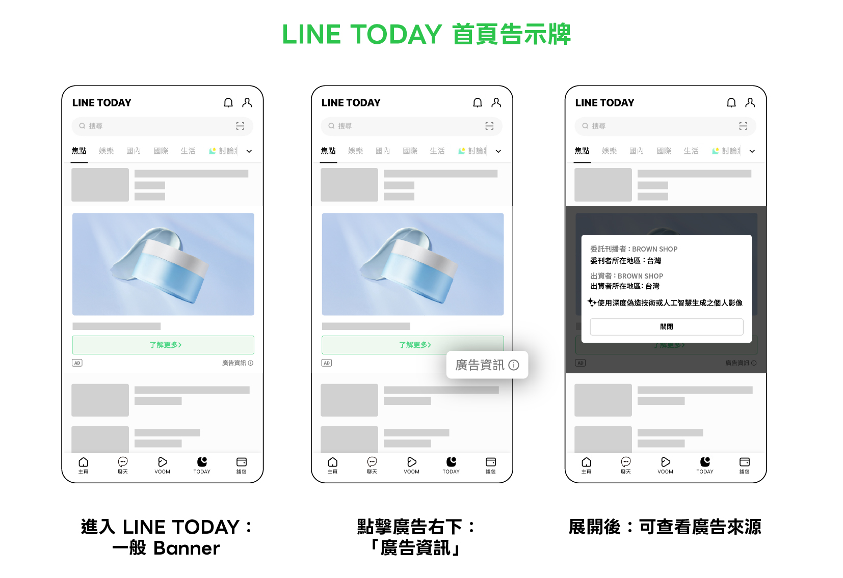 為配合《詐欺犯罪危害防制條例》及相關子法規之要求,並秉持 LINE Taiwan 防範詐騙、保障用戶安全之立場,針對 LINE 廣告之刊登規範進行更新。針對刊登之廣告內容,除原有禁止刊登之產品與服務類型外,所有廣告版位之上架素材,須明確揭露廣告來源資訊;相關揭露內容將依版位不同,呈現於對應位置。