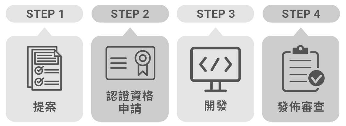 開發資格審查大約需1~2個月的時間。提案若通過,會收到 LINE 的通知往下進行公司資格審查;若不通過,恕不另外告知。發佈前審查約需5-10個工作天,若審查結果有需要修正之處,則取決於申請者修正的時程。