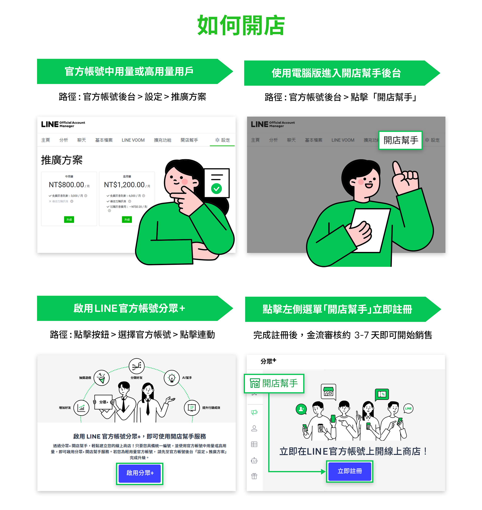 凡是中、高用量的官方帳號就可以免費開店喔!