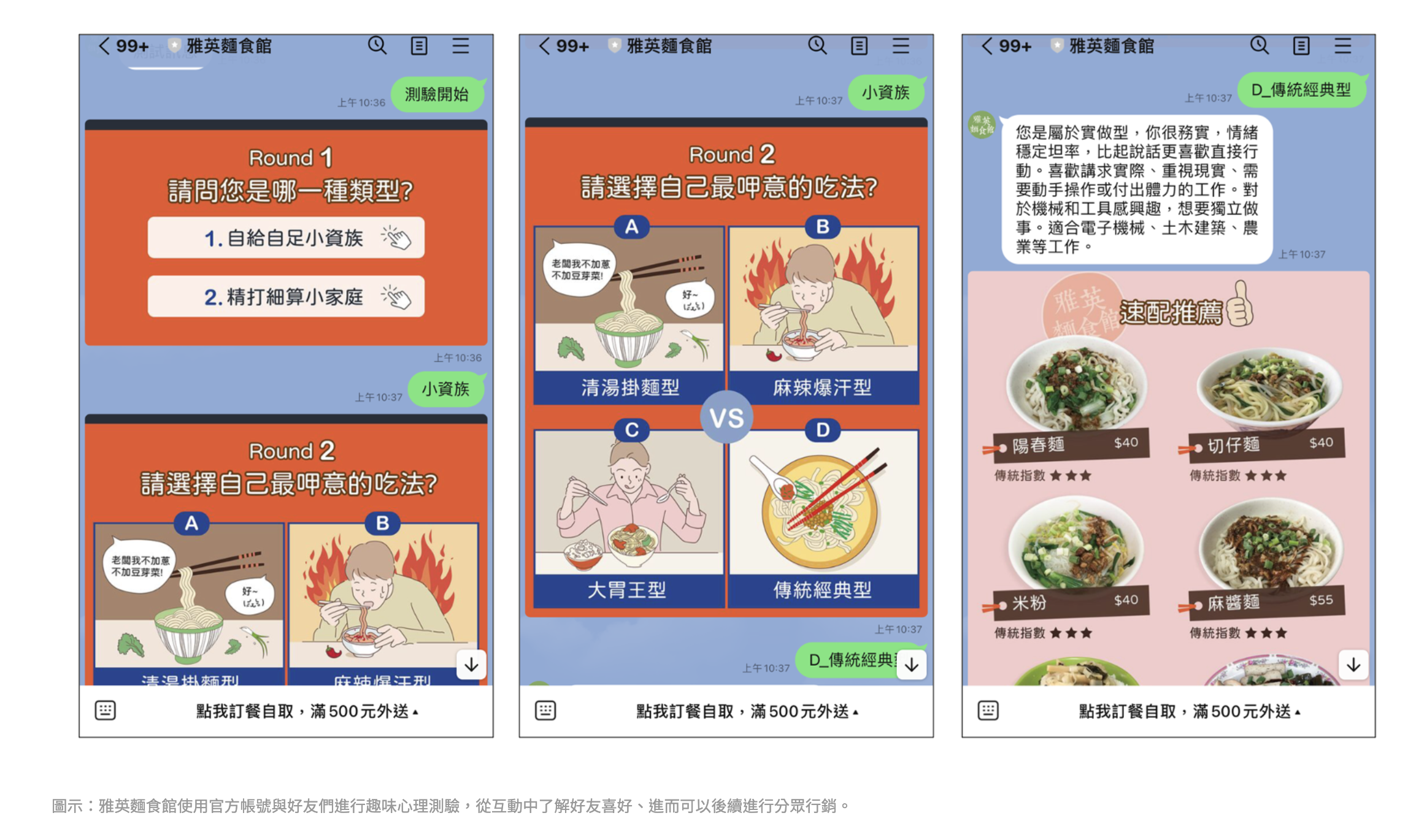 他們利用"分眾+"設計一些心理測驗,然後根據測驗結果給每位顧客貼上不同的標籤,比如「愛點小菜派」或「偏好湯麵派」。