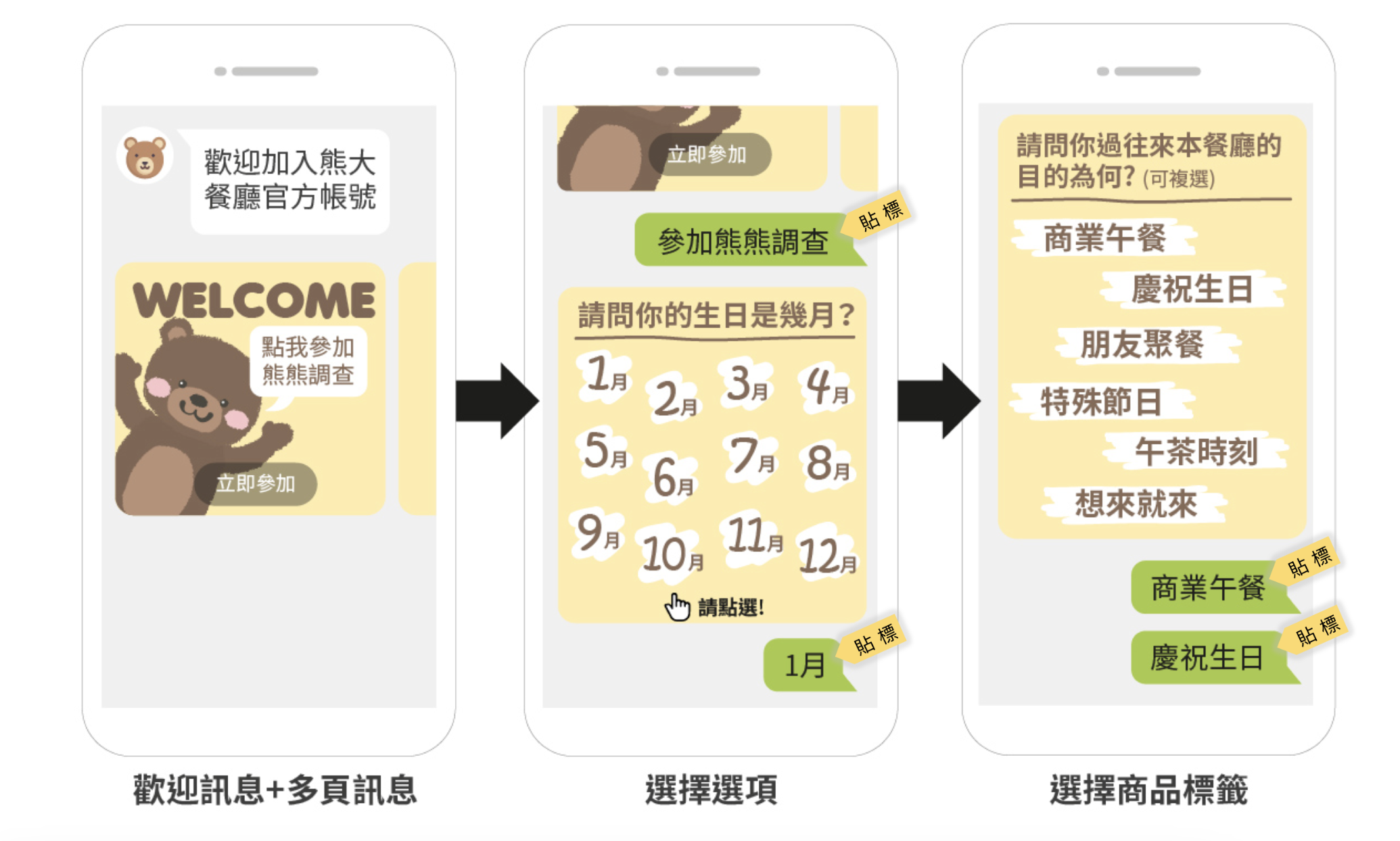 甚至你可以設計一個調查互動(例如:詢問好友生日),就可以在互動過程中貼標。